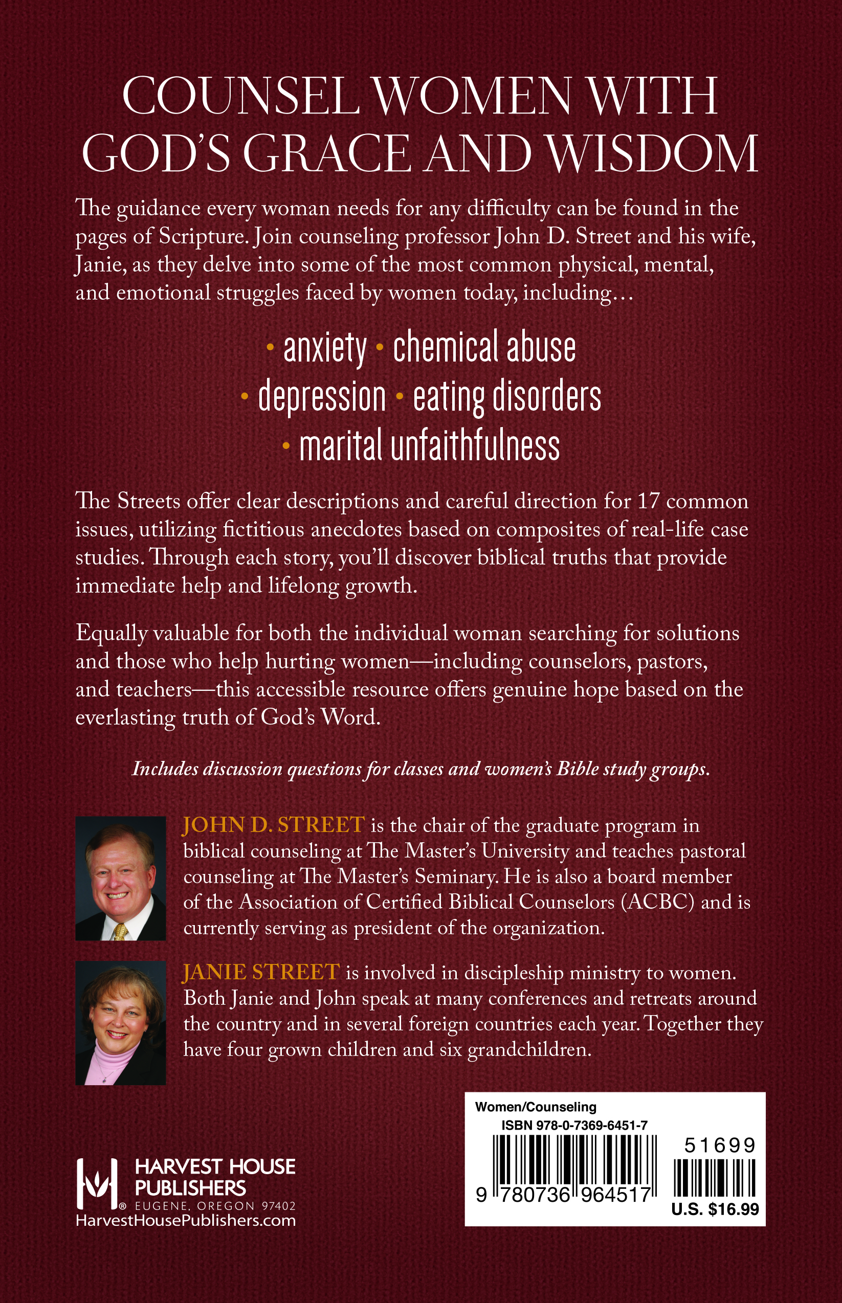 The guidance every woman needs for any difficulty can be found in the pages of Scripture. Join counseling professor John D. Street and his wife, Janie, as they delve into some of the most common physical, mental, and emotional struggles faced by women today, including…