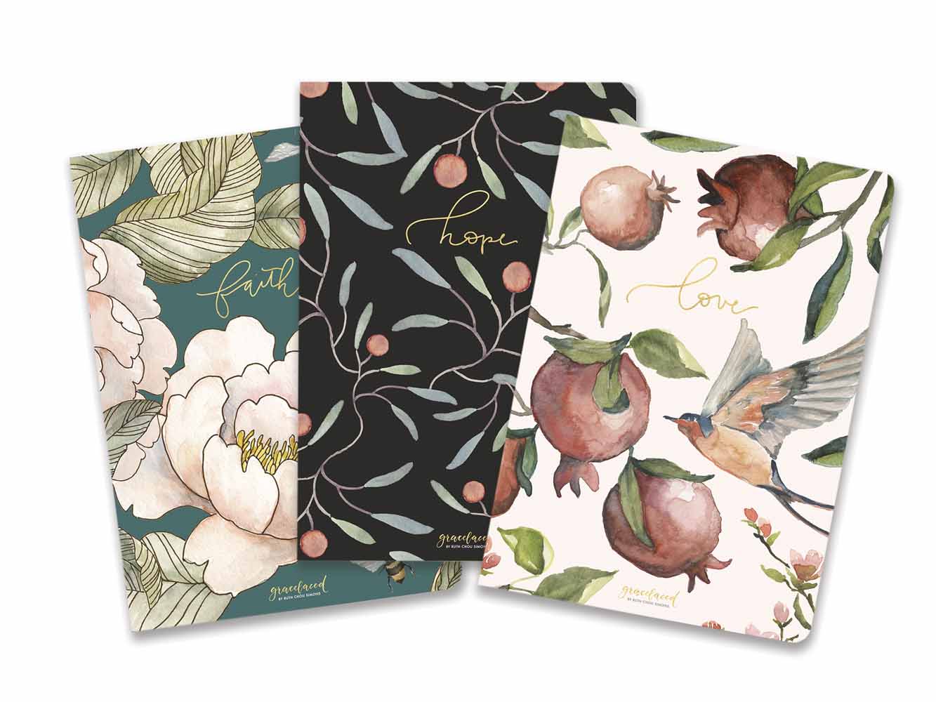 GraceLaced Lined Notebooks, Set of 3, Faith, Hope, Love