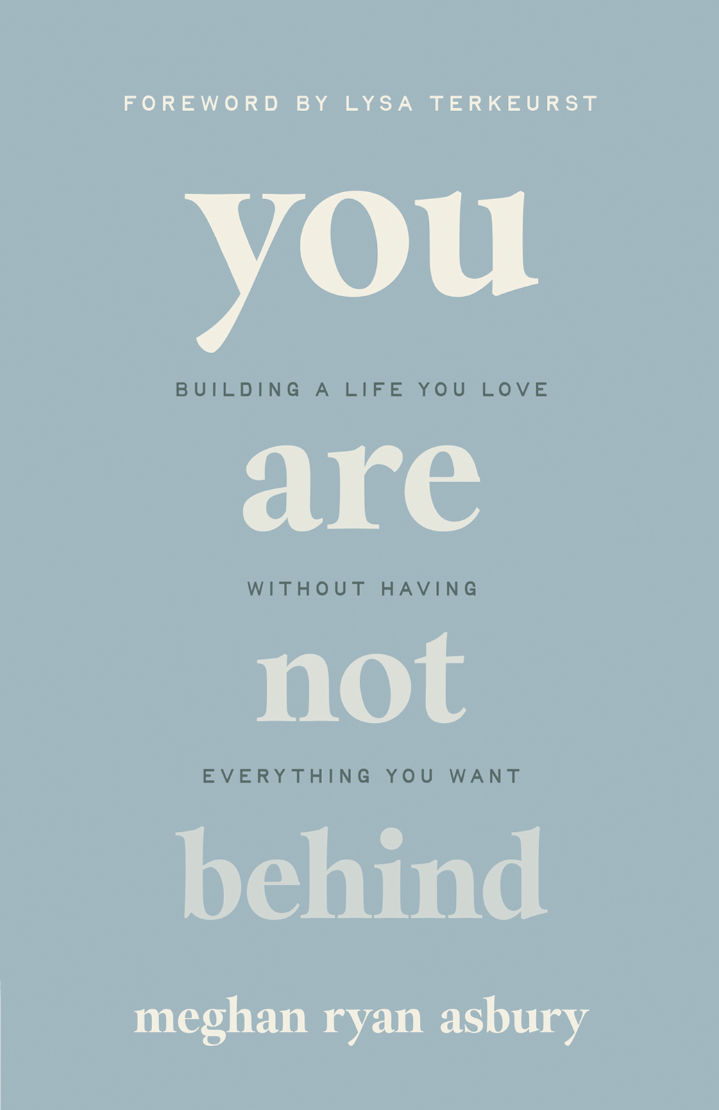In You Are Not Behind, Meghan Ryan Asbury will help you create a life you love with the one you already have. Drawing on biblical wisdom and relatable stories, Meghan will guide you to