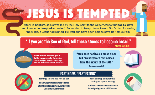 We also included “burritos” in the subtitle of the book (or maybe you didn’t notice and are going to zoom in more carefully on the cover art to see if, in fact, we put burritos in the title. Yes, we did!). But what do burritos have to do with Jesus? Great question. The answer? Absolutely nothing. Except, we talk about Jesus being tempted after 40 days of fasting and “the kid” in each of us goes from “fasting” to “fast eating” because, why not?! Did you know the world record for eating a burrito is 35.26 seconds? How is that even possible? This humorous comparison just might help a kid remember that fasting is really the opposite of fast eating. That Jesus didn’t eat for 40 days before being tempted by Satan, and if you ask me, it is much more impressive than inhaling a burrito in under 36 seconds (no offense, current record holder).
